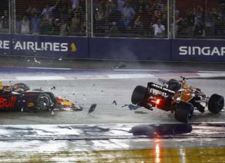 После успешного старта пилот McLaren Фернандо Алонсо стал жертвой обстоятельств в первом повороте Гран При Сингапура.Стартовав с восьмого места, Фернандо въезжал в первый поворот третьим, но в первом вираже его вынес Макс Ферстаппен, в машину которого,...